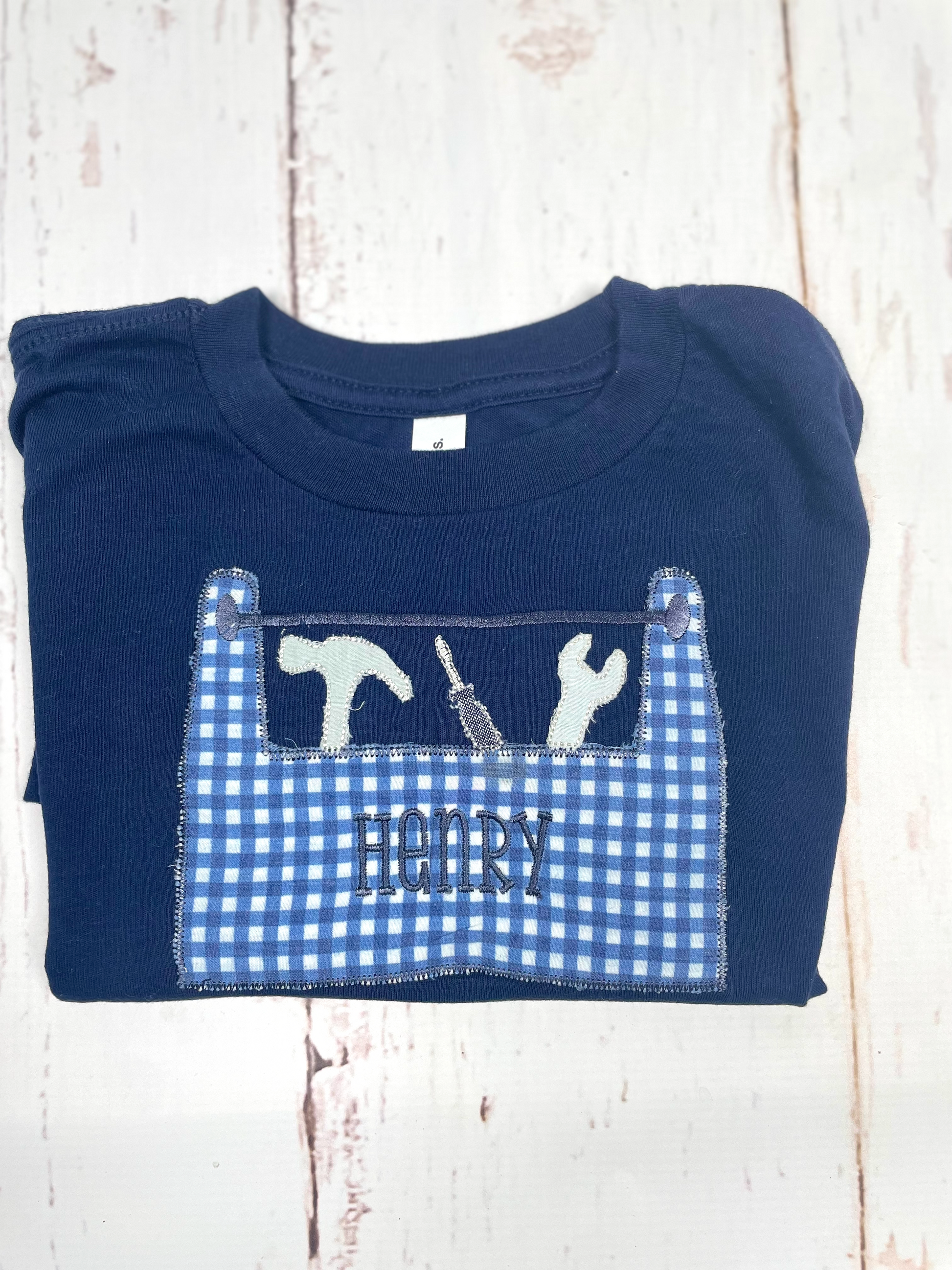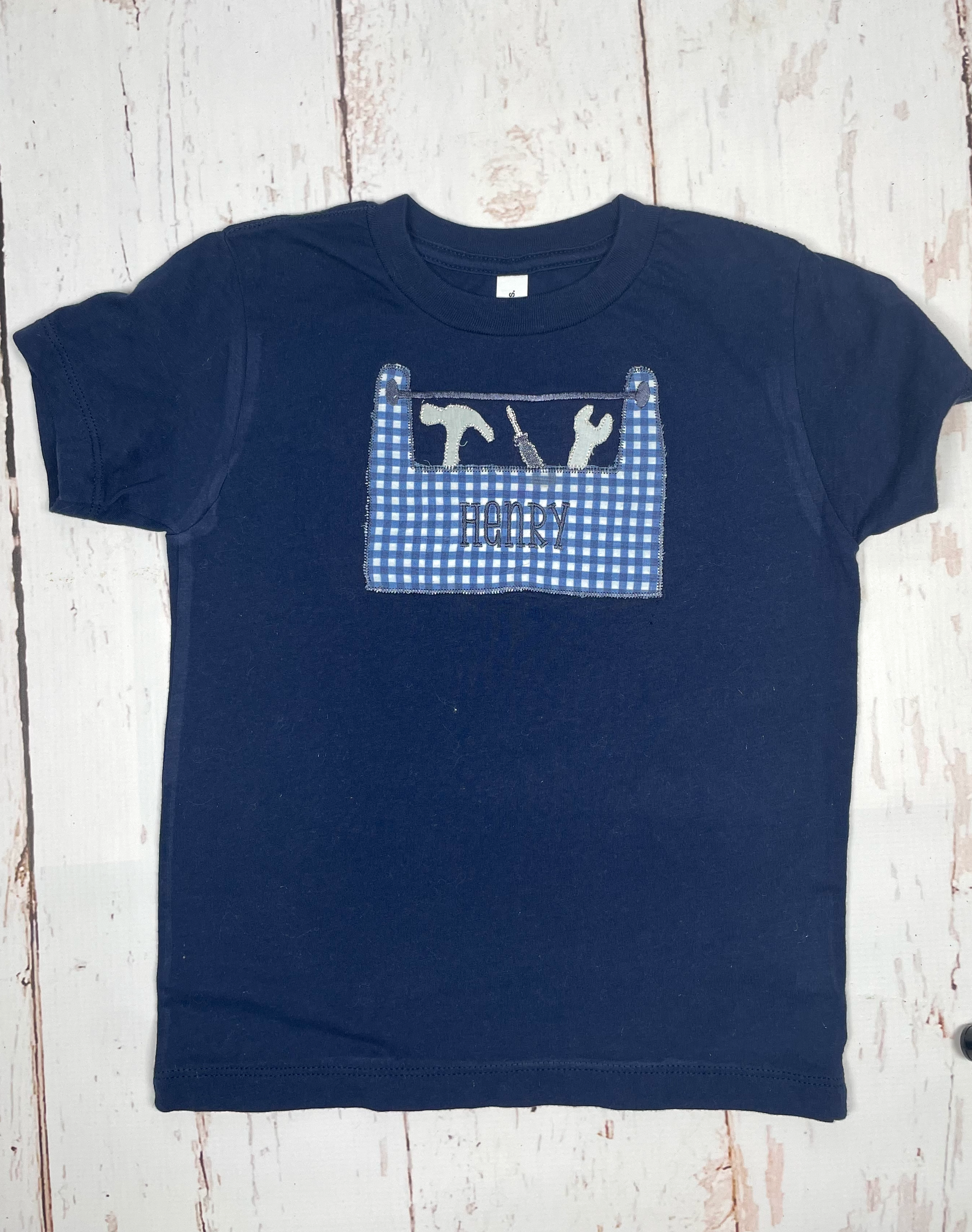 Add some customization to your little one's wardrobe with this custom name toolbox applique shirt! Perfect for showing off their love for tools. A fun and playful addition to any child's clothing collection. Get ready to receive compliments and smiles!