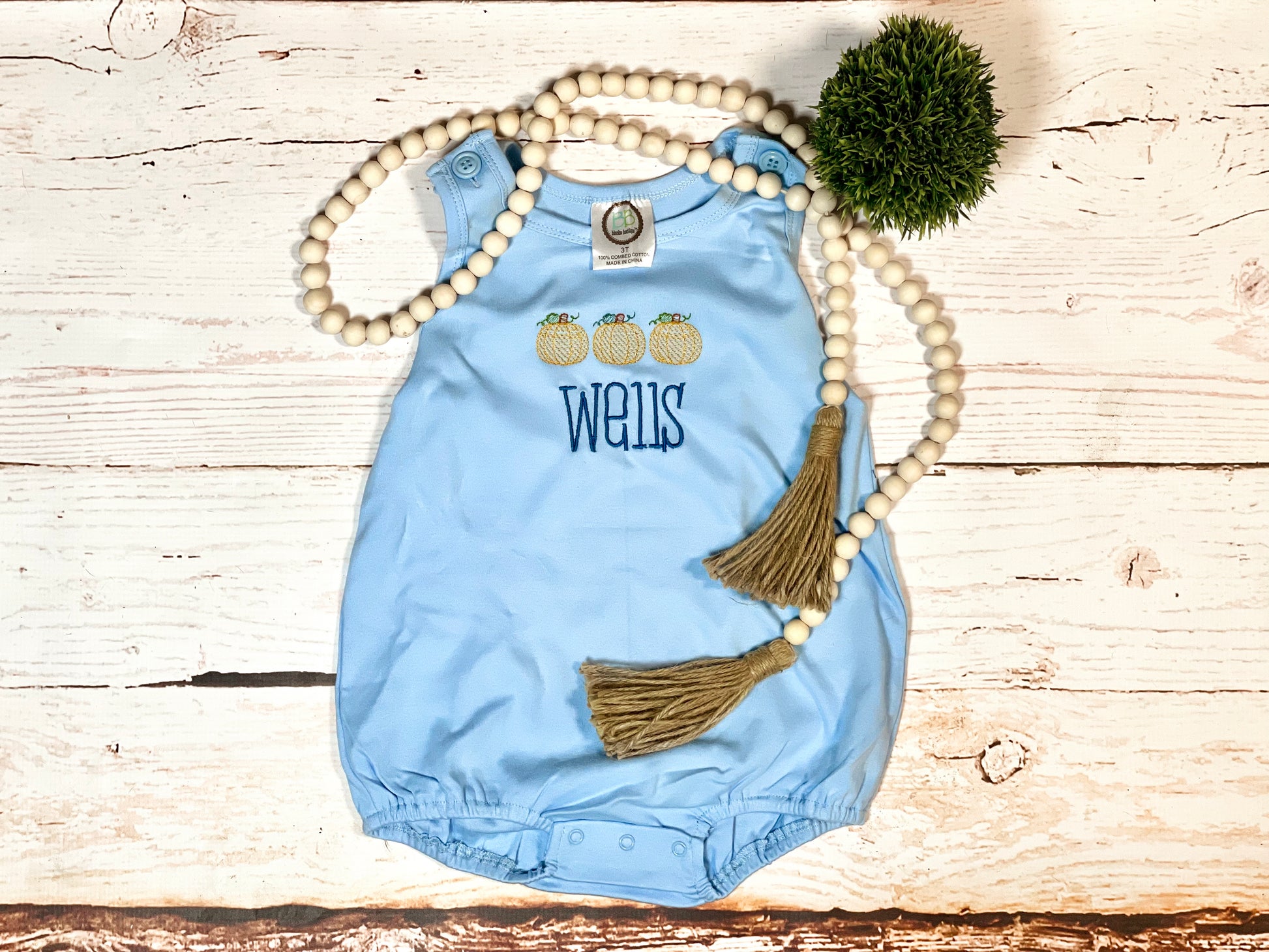 Dress your little pumpkin in style with our Custom Pumpkin Embroidery outfit! Featuring adorable pumpkin embroidery and a custom name for a personalized touch. A perfect way to show off your little one's unique personality. Order now for a truly special addition to their wardrobe!